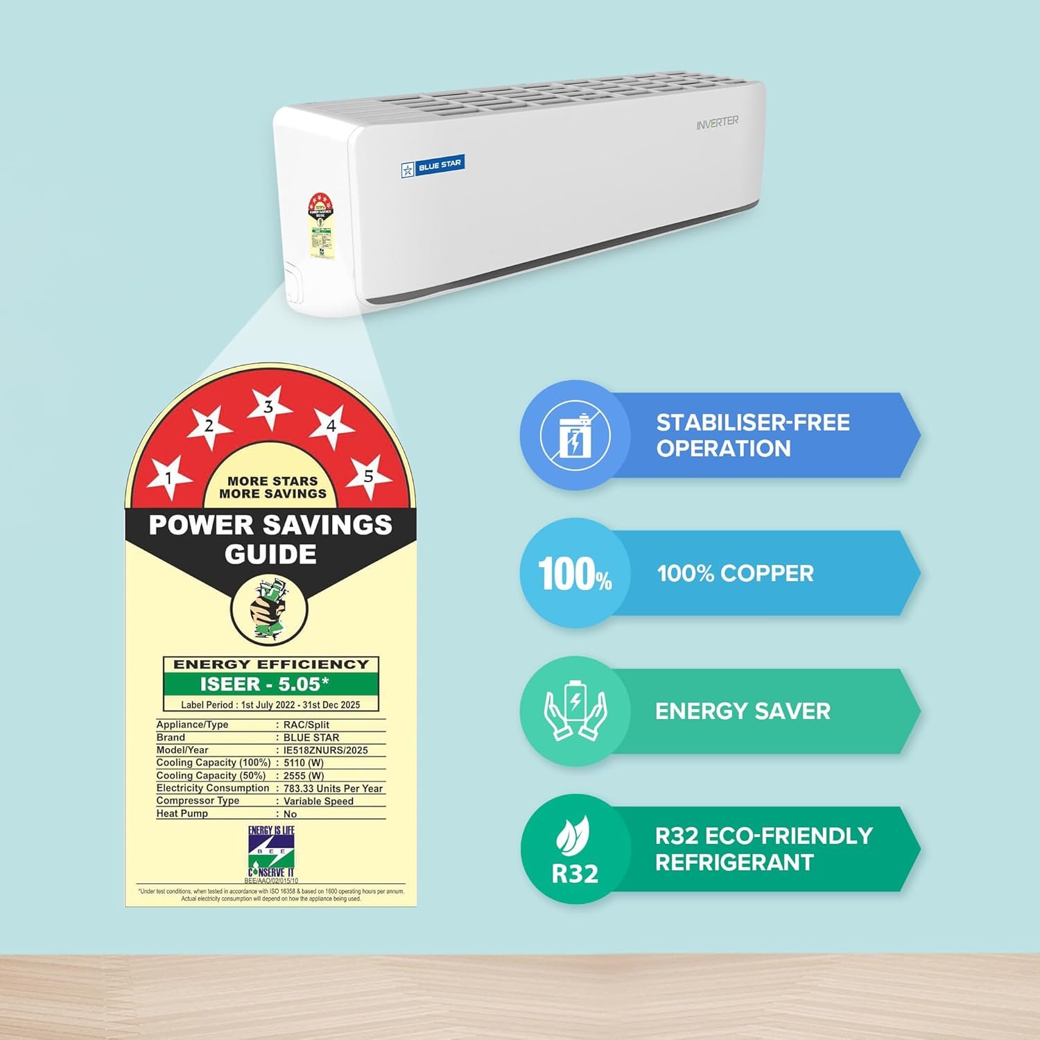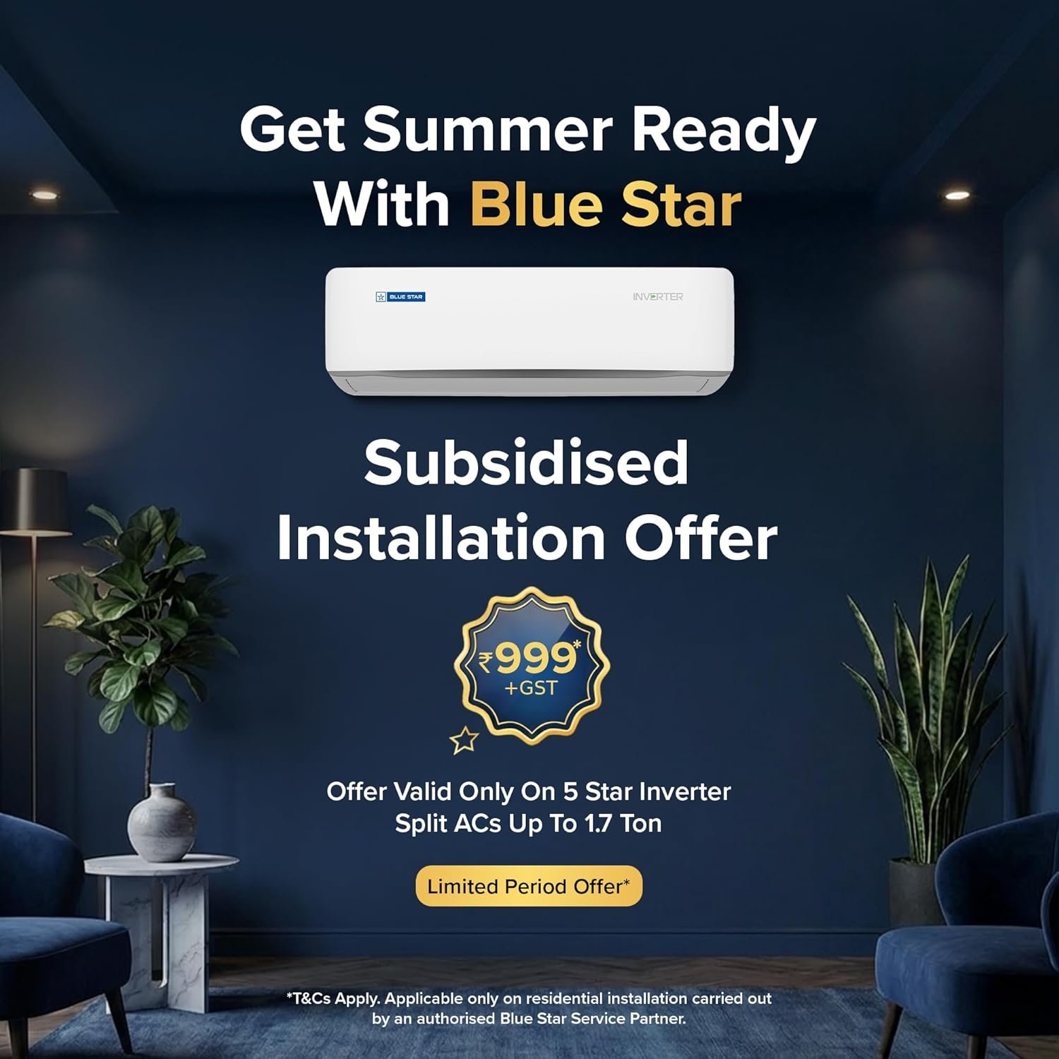 • At amazon.in you can purchase Blue Star 1.5 Ton 5 Star, 60 Months Warranty, Wi-Fi Smart Inverter Split AC (Copper, Convertible 5 in 1 Cooling, AI Pro, DigiQ Hepta Sensors, 4 Way Swing, IE518ZNURS, White) for only ₹ 40,990