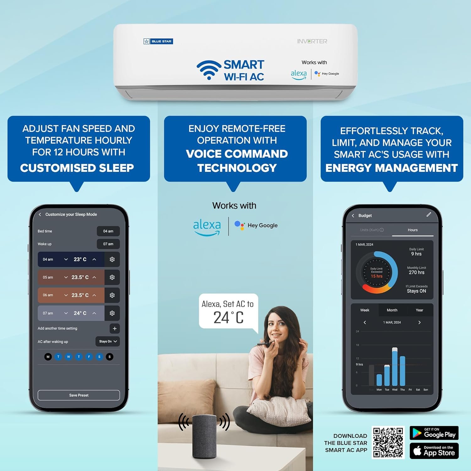 Blue Star 1.5 Ton 5 Star, 60 Months Warranty, Wi-Fi Smart Inverter Split AC (Copper, Convertible 5 in 1 Cooling, AI Pro, DigiQ Hepta Sensors, 4 Way Swing, IE518ZNURS, White) Prices