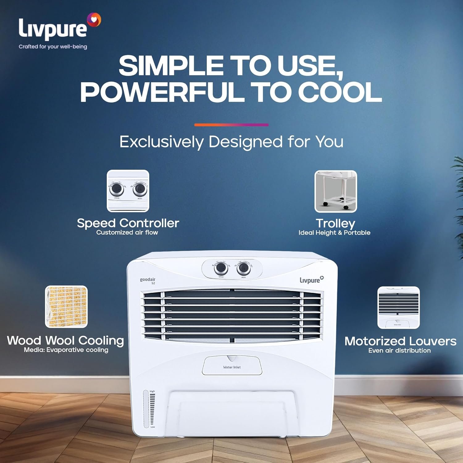 Livpure GoodAir Window 52L Air Cooler is designed for effective cooling in medium to large-sized rooms.