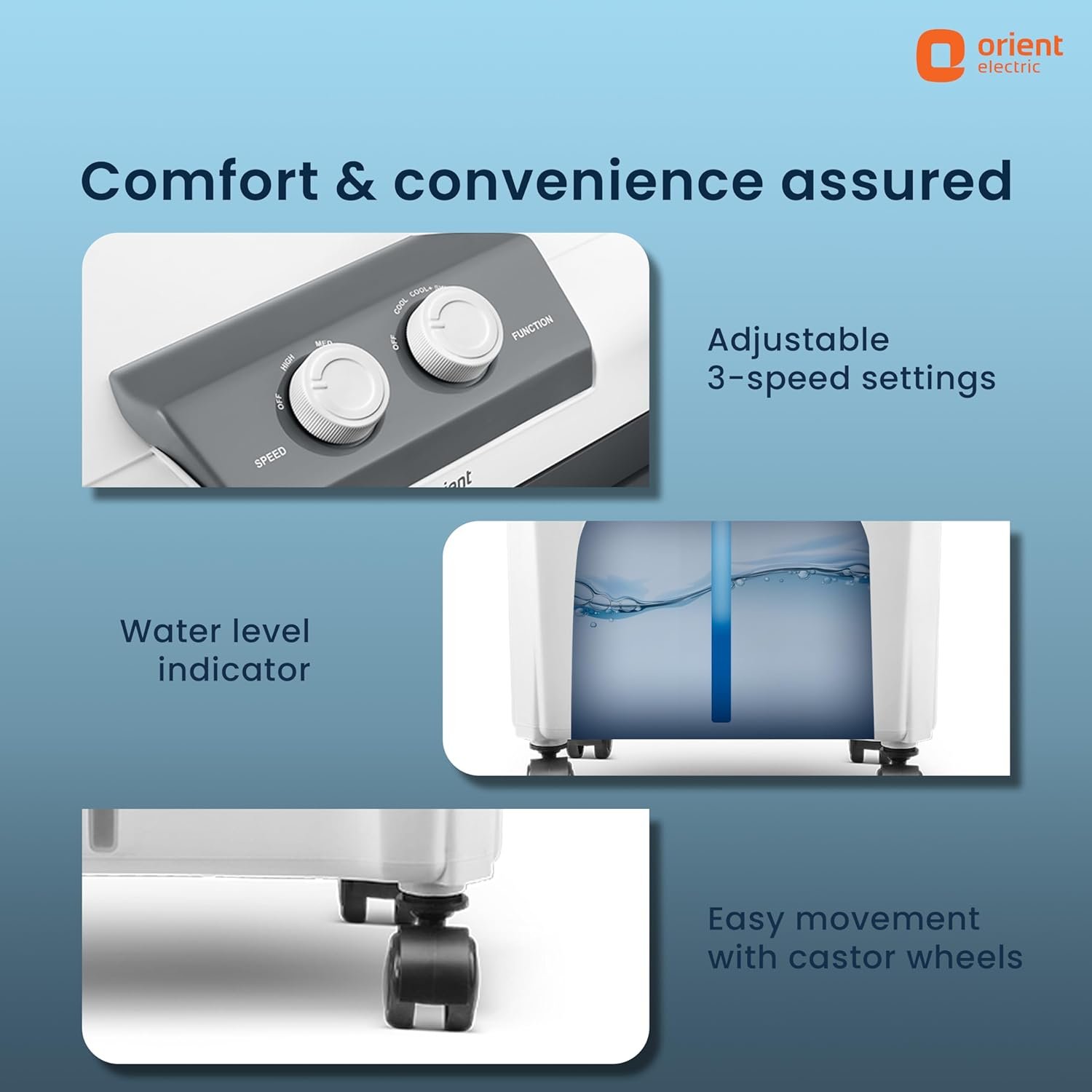 Orient Electric Durachill 40 L Portable Air Cooler For Home | Densenest Honeycomb Pads |More Air Delivery | Fully Collapsible Louvers |Inverter Compatible | 1 Year Warranty by Orient | White & Grey