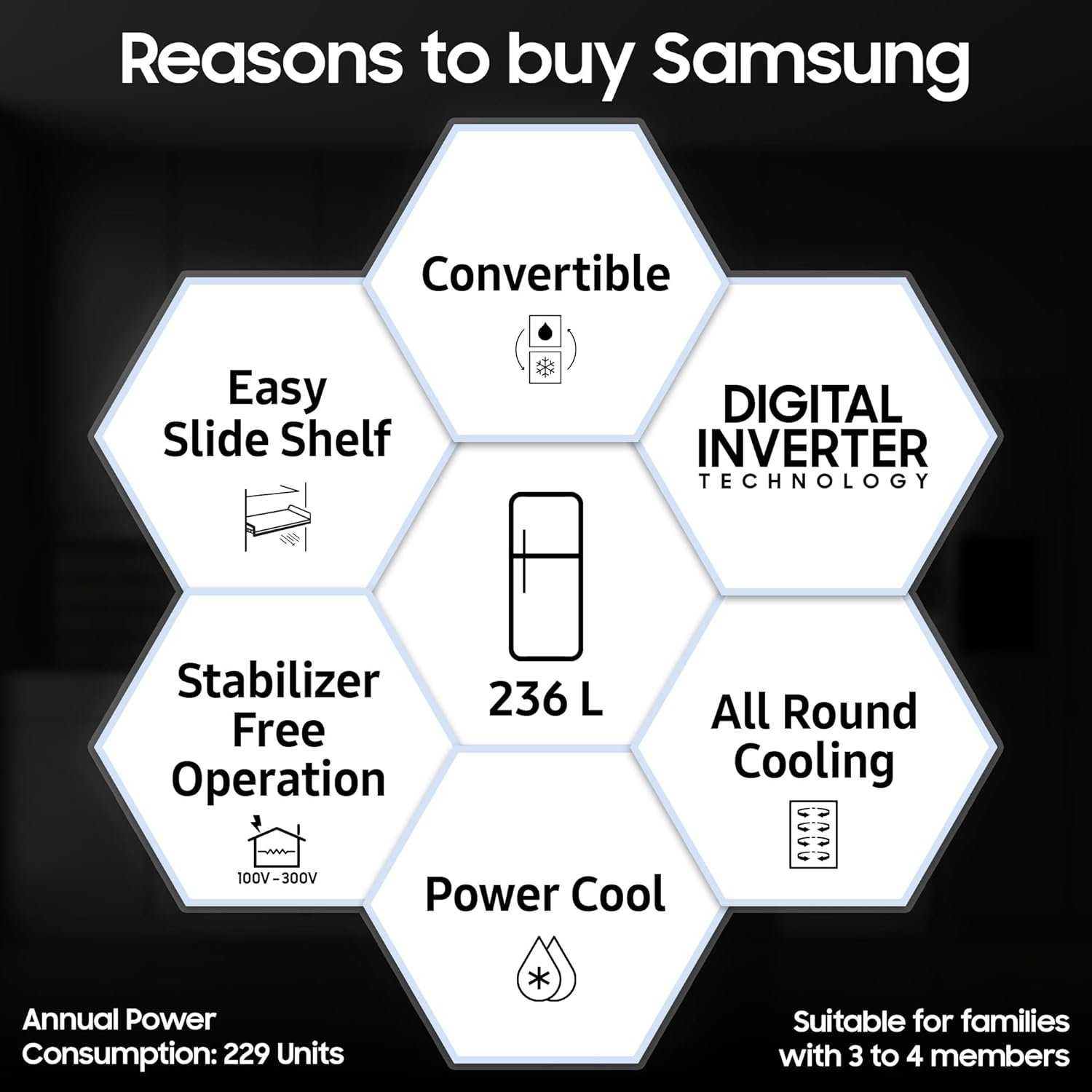 Samsung 236 L, 3 Star, Convertible, Digital Inverter with Display Frost Free Double Door Refrigerator (RT28C3733B1/HL, Black Matte/Black DOI) Prices