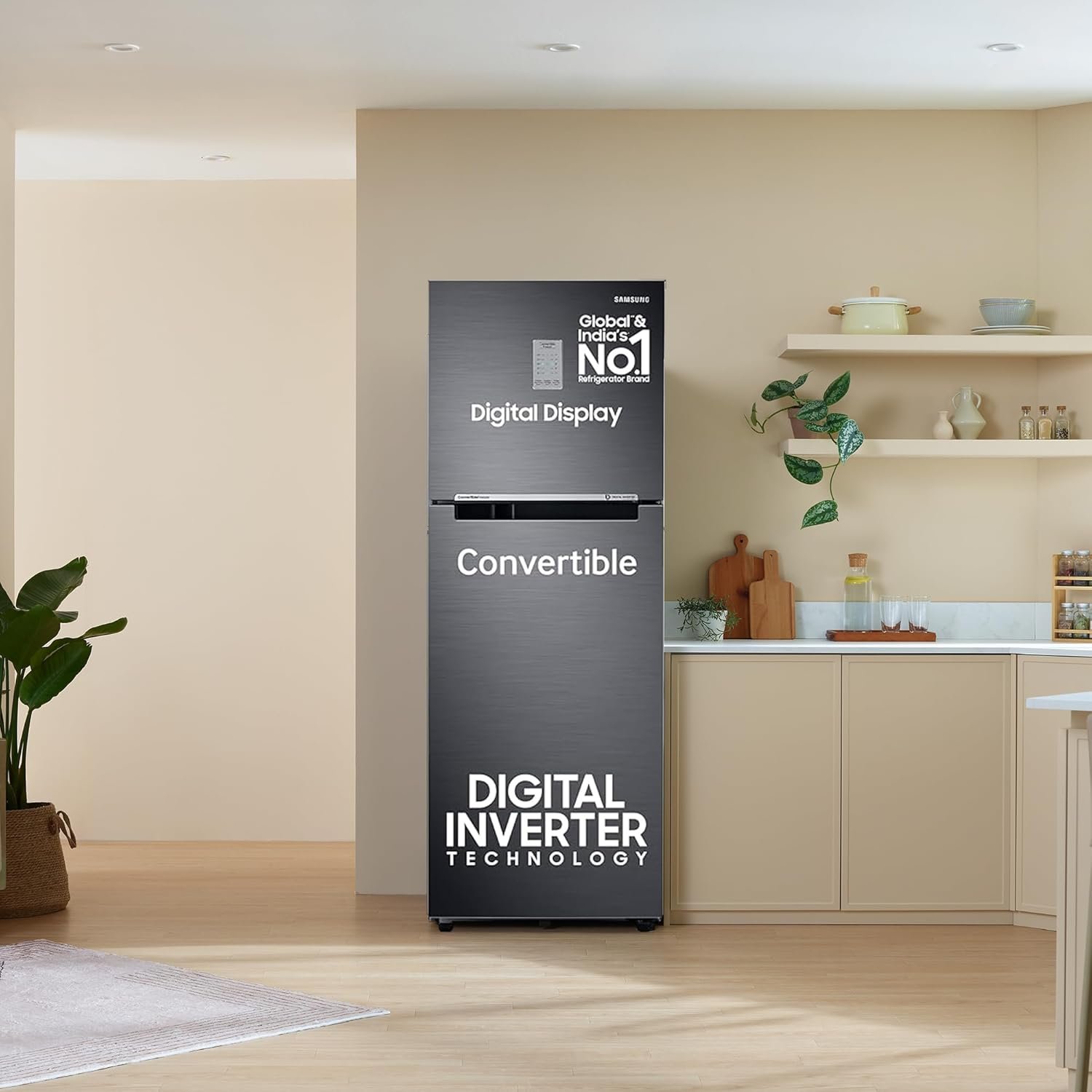 Samsung 236 L, 3 Star, Convertible, Digital Inverter with Display Frost Free Double Door Refrigerator (RT28C3733B1/HL, Black Matte/Black DOI)
