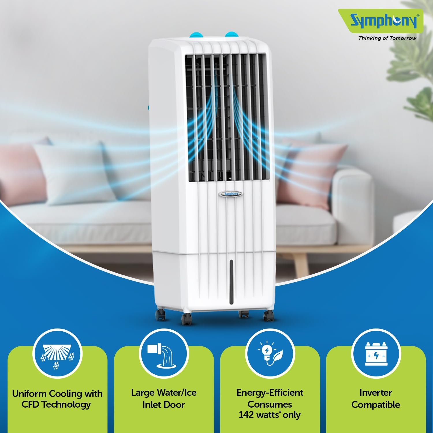 • At amazon.in you can purchase Symphony Diet 12T Tower Air Cooler | Honeycomb Cooling Pad | Powerful Blower | Auto Louver Movement | Cool Flow Dispenser | 12L | 1-Year Warranty for only ₹ 5,491 , which is 16% less than the cost in reliancedigital (₹ 6,499).